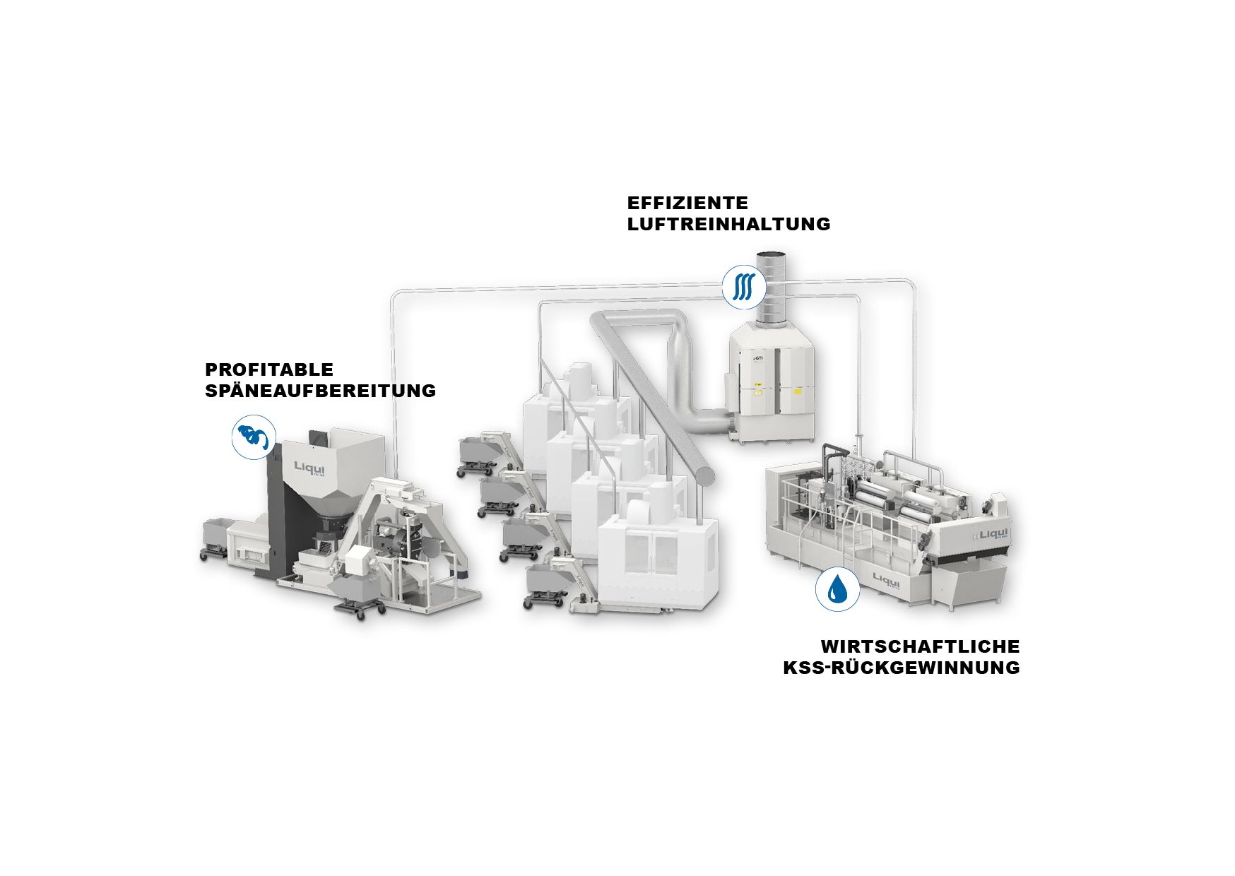 Wir setzen auf Nachhaltigkeit! Egal ob im Bereich KSS, Späne oder Prozessluft! Kreislaufwirtschaft ist heutzutage ein Muss und mit der Technik und den Systemen von LIQUI ein Kinderspiel.